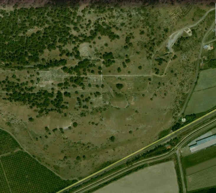 Hemos mirado en Google-Maps y los resultados indican que sólo hay restos de la zona B-C-D-E-F-G del antiguo Priene, por no conservarse nada más, ni murallas, ni Estadio, a pesar de que en la zona nunca se construyó nada encima. Pero parece como si se hubiera querido borrar la huella de que allí hubo una antigua ciudad. Las ruinas están a un kilómetro al Oeste de la moderna Güllübahçe, y ésta al Sur-Oeste de Söke.