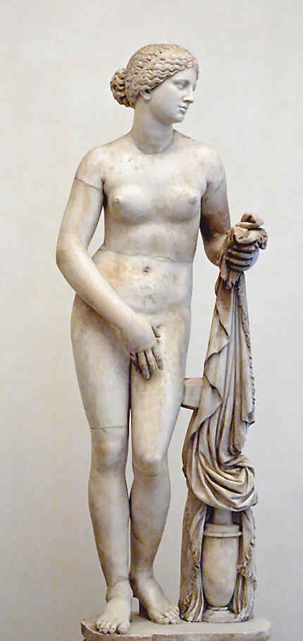 Como no es lo mismo ver un torso, sin brazos y sin cabeza, de Venus, que verla entera, dado que se hicieron varias copias de la Venus de Cnido original, y puesto que algunas de ellas se conservan, accedamos a una copia y sabremos cómo era el original cuando estaba entero. Así.