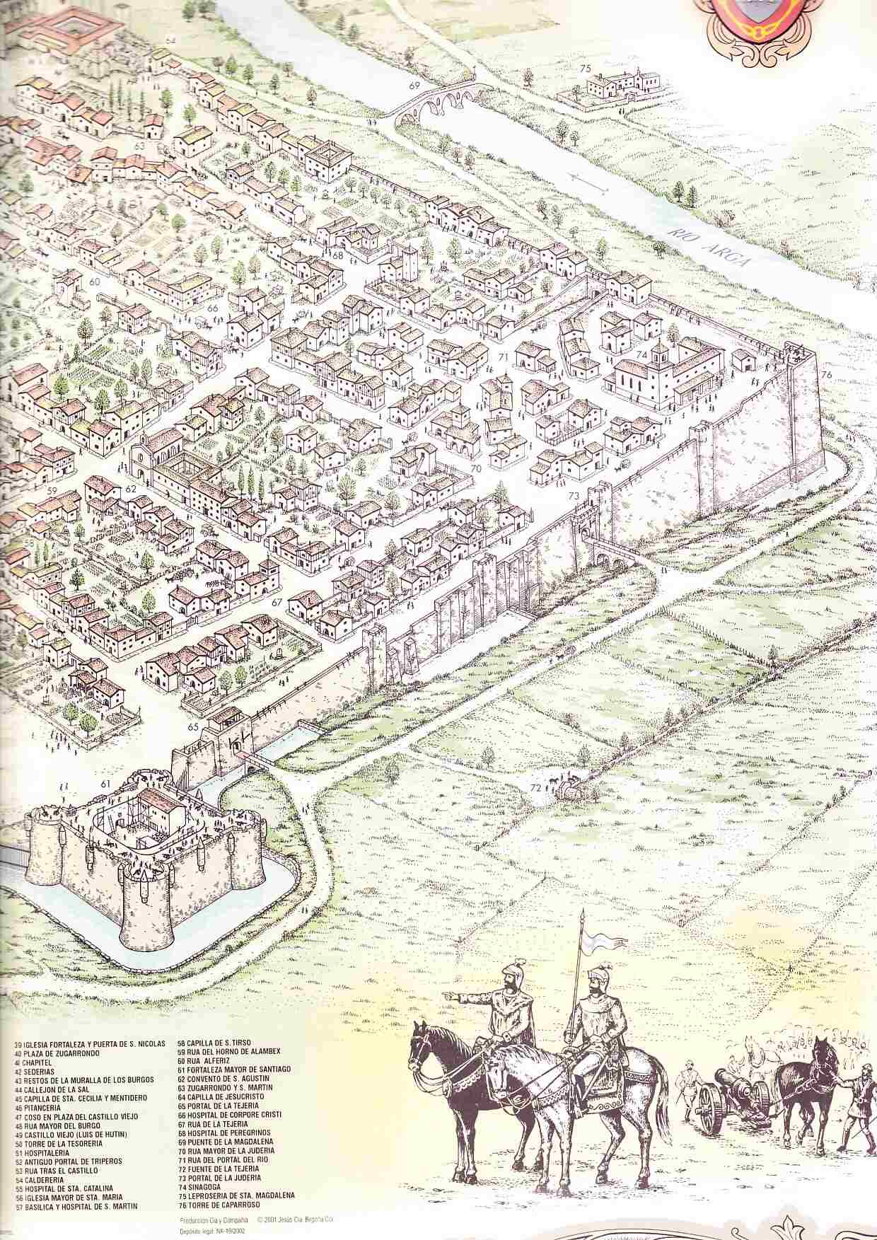 ……….Este Castillo recuerda al construido en nuestra tierra por Fernando el Católico, allá por el año 1.515. Y por la Puerta de Bisagra de Toledo, obra de Carlos I (1.500–1.558). En aquel entonces los Castillos formaban la totalidad de la defensa. No se pensaba en hacer posiciones adelantadas. Las torres eran redondas, bien gruesas, para detener o hacer rebotar las balas de los cañones de la época. No se habían inventado las fortalezas abaluartadas, que en tierras españolas se inician en tiempos de Felipe II. Balas de cañón, sobre un pequeño pedestal, bordean el camino de acceso al Castillo. No siquiera había foso.