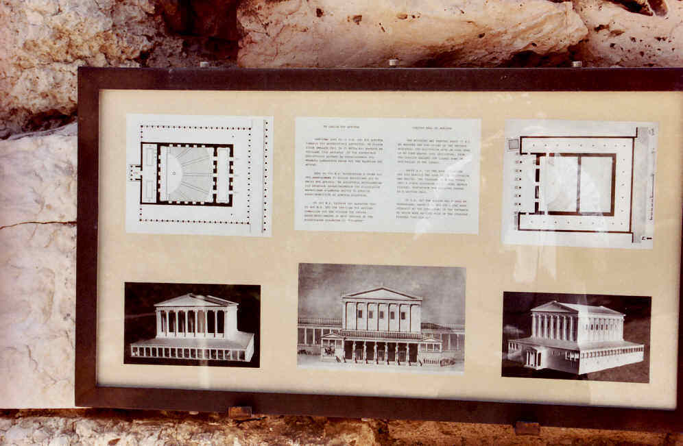 ……….Mire el lector ese cartel que hay en las piedras de la base. Es éste y dice lo que el monumento fue en tiempos. En la parte inferior central están los pilares con los tritones de la foto superior. Uno tiene que imaginarse el enorme edificio que se levantaba por encima de esos ya enormes pilares.