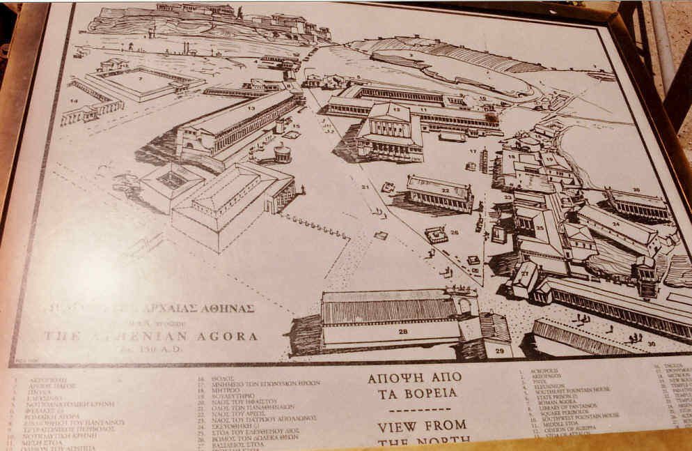 ……….Como se ve, en tiempo de los romanos, el Ágora había perdido extensión debido a las nuevas construcciones. Si Sócrates levantara la cabeza …