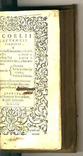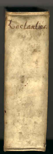 Tres vistas de las obras completas de Lactancio. Edición en latín hecha en Lyon (Lugduni) en 1.556. Reinaba en España Carlos I. Tamaño real, 8 x 12 cm.