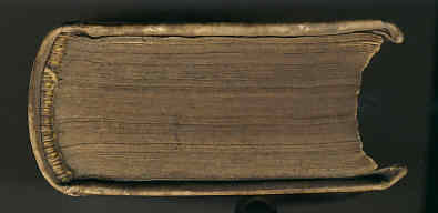El tercero lo acabo de comprar. Me ha costado 15 euros. Supongo que será porque casi nadie puede estar interesado en tamaña cosa. Véalo el lector. He sacado una parte de la otra página para que se vea que está encuadernado a «diente de perro», que se dice. Las tapas son muy corrientes, tal vez en un futuro le ponga tapas de cuero; luce mucho más el libro.